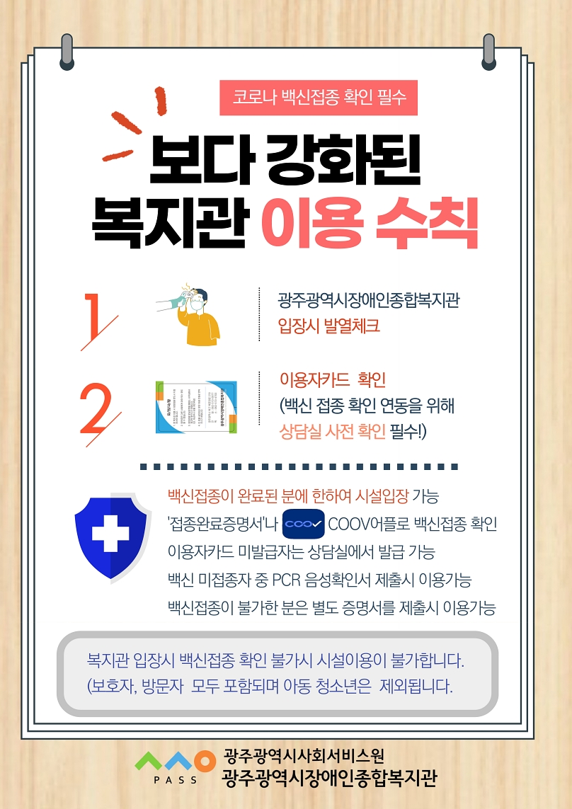 보다 강화된 복지관 이용 수칙[코로나 백신접종 확인 필수]